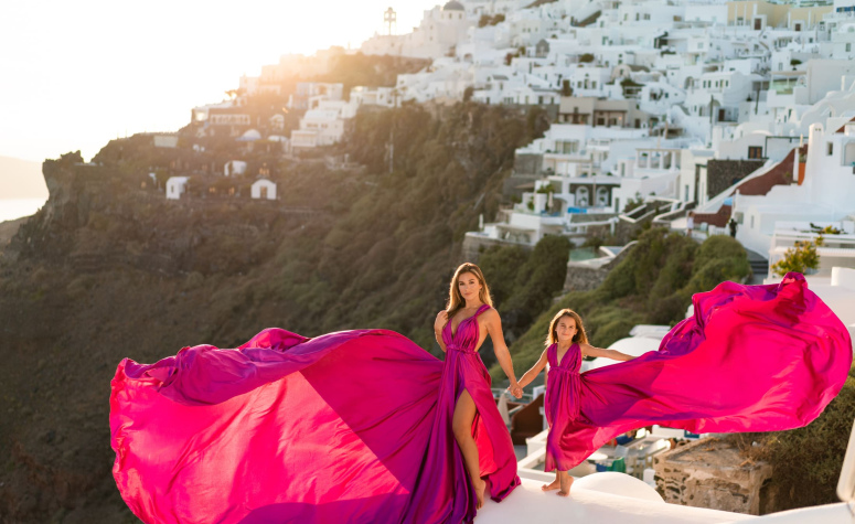 A love story, portrait photo, Santorini wedding, or just simple photos — no matter what kind of photo session you’re planning, the most difficult part is to choose a perfect flying dress.
