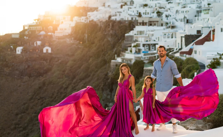 After you decide on the concept, it’s high time to choose a photoshoot location that will perfectly reflect it. Beautiful streets of Budapest, snowy mountains in Austria, or the sea coast somewhere in Italy — just choose! We can recommend you to try Greece destinations like Santorini, Mykonos, Faros, and Oia. Best views and stunning photos are guaranteed.