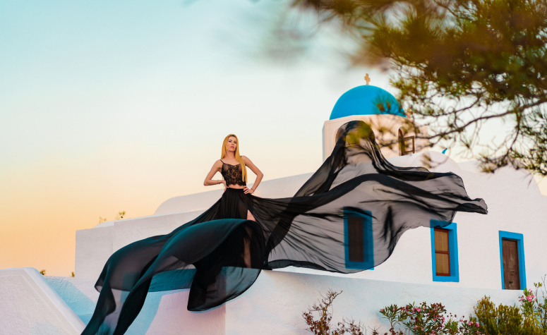 Whatever Santorini photoshoot type you go for, remember that flying dress pictures will look amazing once you feel confident and happy about yourself and the whole occasion. SantoriniDress is always here to help you in your unforgettable flying dress experience with our convenient Santorini flying dress photoshoot packages.