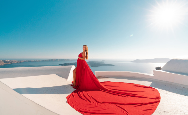 To keep this wonderful moment forever in memory, we suggest arranging a flying dress photoshoot in Santorini. The famous flying dress rental is available for your amazing photoshoot in Greece. Check out more flying dresses options and choose the most lovely ones for you.